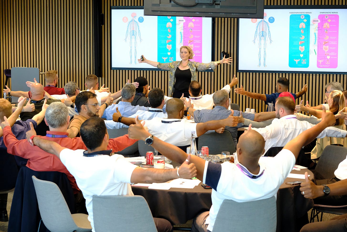 It’s a little speaker lifesaver, oh- and that glass of water on the lectern or meeting room table is also a godsend when anxiety hits. Take a slow swig, feel the water as you swallow it, and come back to the body. Notice that paying attention to your edges – where your body meets the space allows you to feel less edgy. It’s essential for all of us to have that in such uncertain times.